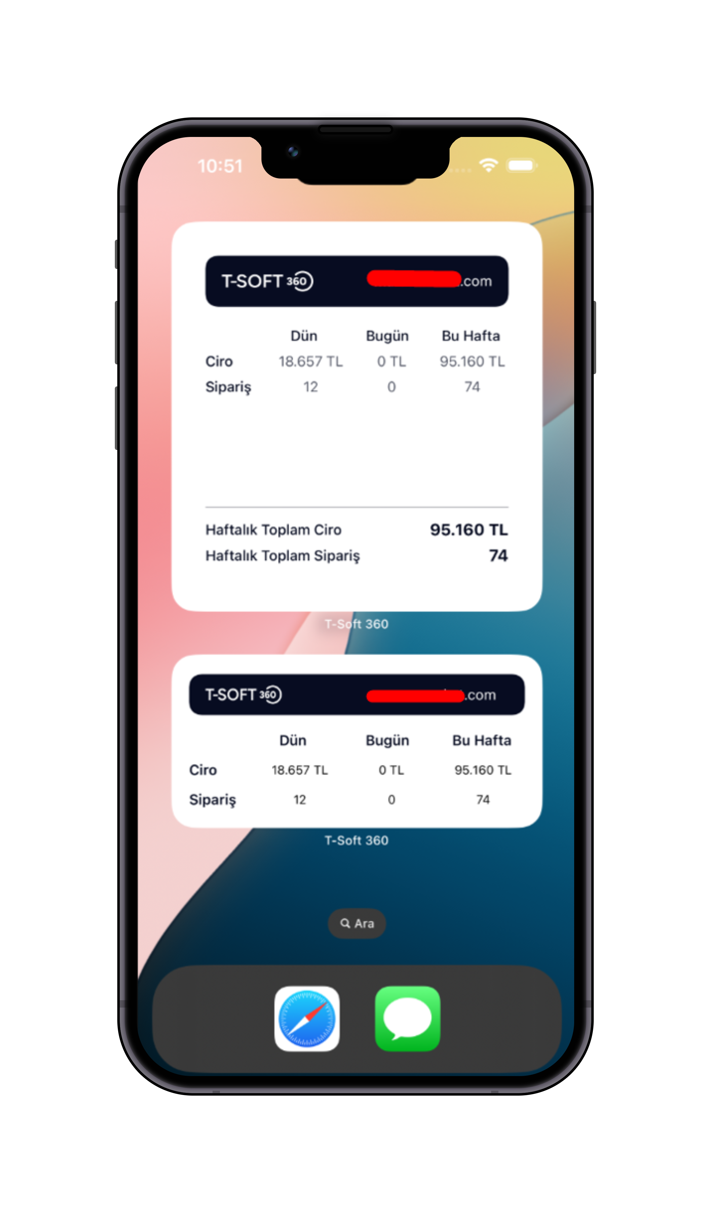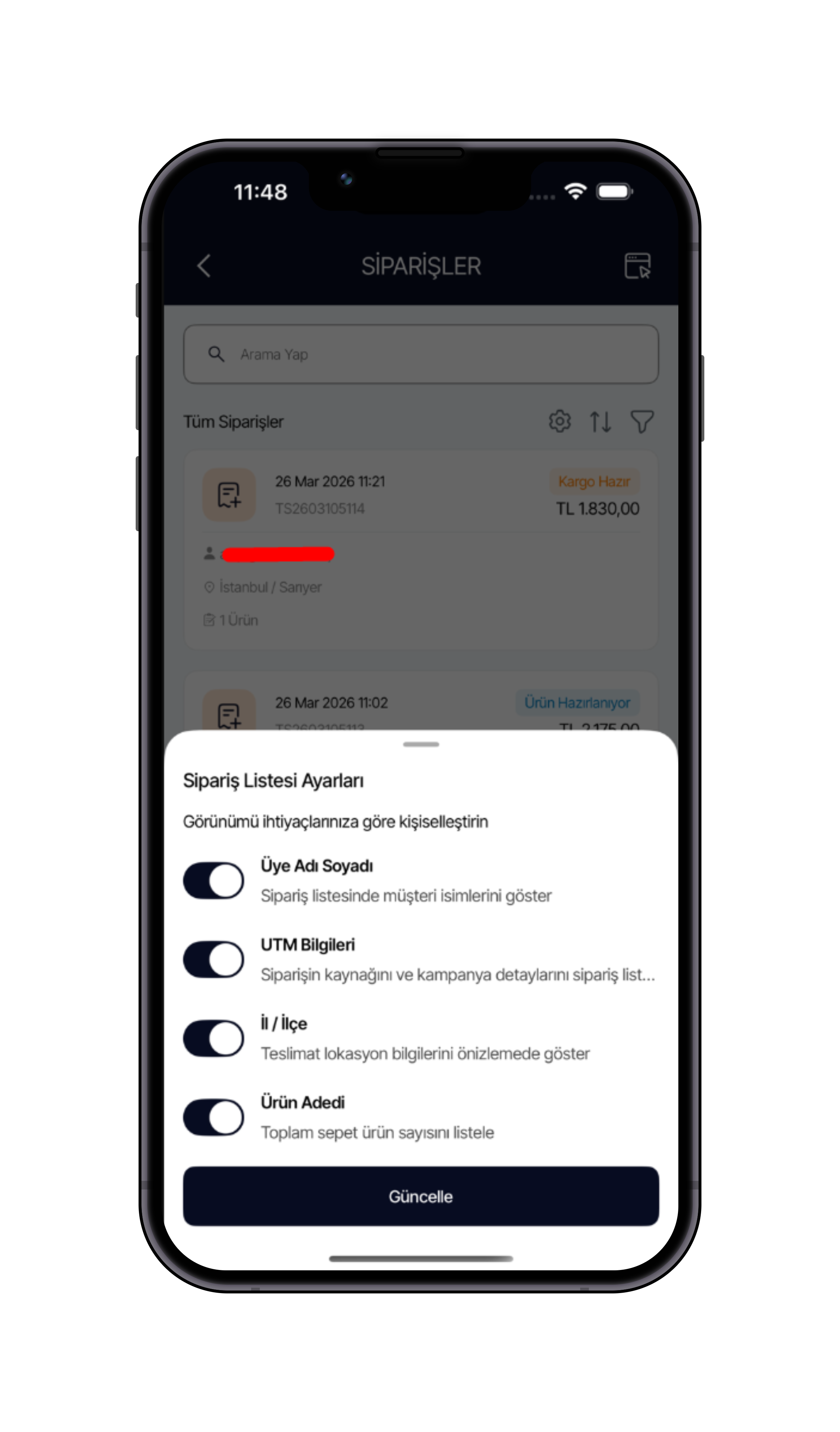 Günlük, haftalık ve aylık sipariş adetleri ile ciro bilgileri widget üzerinden hızlıca görüntülenebilir hale getirildi.